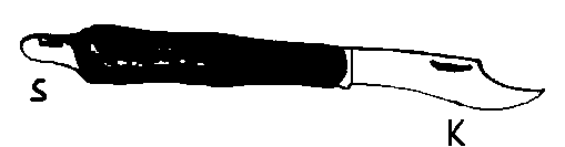 Bildo-2: Faldebla greftilo, (k: klingo; s: spateleto).