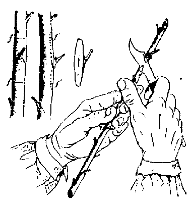 Bildo-4: Trunka stumpo, kies unu el la flankaj burĝonoj disvolviĝis kiel anstataĵa trunko. Greftebla, per okulŝildo.