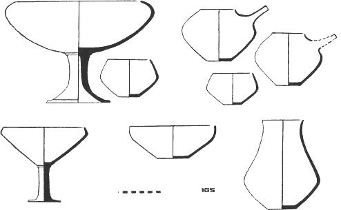 Bildo 6. Ceramikaj ujoj el tombo N 165 (Ĝ-4B) de la bustana tempo, kiuj kopias la formojn de la frua ĝarkutana etapo (la fenomeno de la renaskiĝo de la arkaikaj tradicioj).