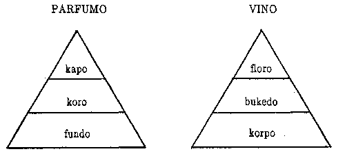 Ĉeestas ankaŭ nuancaĵoj laŭ la ideoj de la parfumisto. Tiel ekestas odor-piramido, kiu similas al la gusto-piramido de la vino.