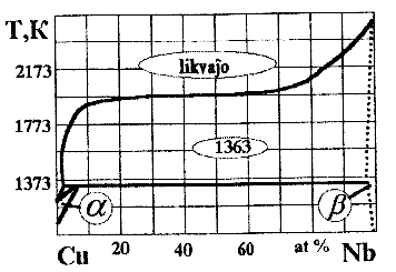 | Fig. 4. Diagramo de ekvilibro de sistemo Cu-Fc | Fig. 5. Diagramo de ekvilibro de sistemo Cu-Nb |