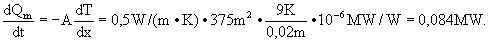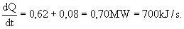 ja la temperaturdiferenco 38° C − 28° C = 10 K kaj la specifa varmo de la akvo estas 4,19 kj/(kg K). La bezonata akvoflukso mem estas evidente