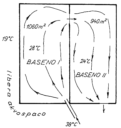 Por ĝenerala informiĝo de la legantoj mi prezentas skizan kalkulon de la varm-bezono de la du basenoj, se ilia akvotemperaturo estus same 28-grada, dum la ekstera akvotemperaturo estus 19° C kaj la termoakvo-temperaturo 39° C.