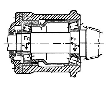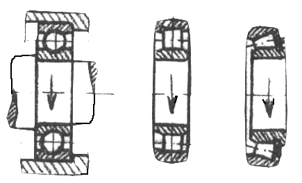 Ĉe radiusaj (transversaj) - la forto efikas en direkto orta al la akso de lagro (bildo 261, 263), ĉe aksaj - la forto efikas en direkto de akso (bildo 262, bildo 264).