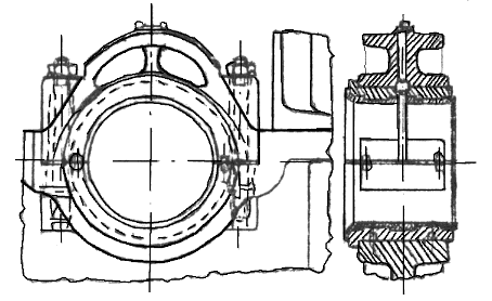| Bildo 283. Lagro de krankoŝafto kun duparta lagrokuseno | Bildo 284. Lagro de krankoŝafto kun kvarparta lagrokuseno |