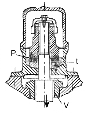 Pendiga lagro kun memstara ringo P kaj gvida enmetaĵo V estas prezentita sur bildo 286. Froto estiĝas sur ringa areo t.