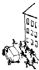 SC.Malsaĝaj knaboj! Kiam estas tia tumulto, mi preferas, anstataŭ varmiĝi, kunpuŝigante kun aliaj, iri sur la mezan veturejon.