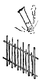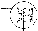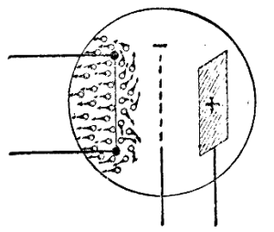 ![]() | Fig. 14. — La krado estas negative ŝargita rilate al la filamento. Malgraŭ la energia alvoko de l' anodo, la elektronoj ne povas trapasi la kradon, kiu forpuŝas ilin. |