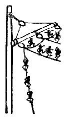 ![]() | Fig. 35. — Oscilcirkvito a konsistanta el bobeno kaj kondensatoro similas du ĉambrojn kunigitajn per koridoro b, en kiu homamaso alterne kuras el unu ĉambro en la alian. |