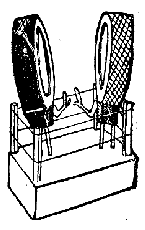 ![]() | Fig. 47. — Variometro konsistas el du bobenoj serie konektitaj: unu fiksa kaj la alia movebla. Tie ĉi la movebla bobeno turniĝas interne de la fiksa bobeno. |