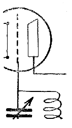 ![]() | Fig. 80. — En rezonanca amplifikatoro la anodkrada kapacito simple aldoniĝas al la kapacito de l' anoda oscilcirkvito. |