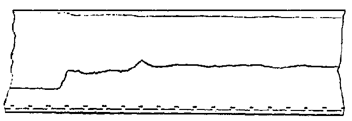 Grafikaĵo de ekflugo kaj parto de flugo registrita per soveta flugregistrilo “Spidobarograf K-2-717”. La supra linio estas registro de flugalto, la suba estas registro de flugrapido. Sur la suba rando videblas ankaŭ rilata linio (la bazo) kun registro de tempaj signoj.