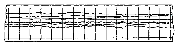 Registro de parto de flugo farita de la soveta flugregistrilo “SARPP-12”. En supra parto maldekstre estas registro de diskreta signalo numero 7 registrita per t.n. superpozicio sur la registrolinio de la unua kanalo. Per pli dikaj linioj estas registritaj diskretaj signaloj numeroj 1 kaj 2. Sinsekvo de la registrolonioj de kontinue ŝanĝiĝantaj parametroj estas distingeblaj laŭ sinsekvo de ilia interrompo. Registro de la bazo estas sur la suba rando — ĝi estas interrompata kiel la sepa. La transversaj linioj estas tempaj signoj, ripetiĝantaj ĉiam post 10 sekundoj.