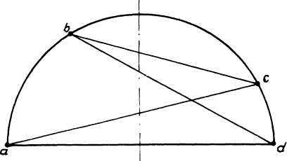 La III-a TEOREMO "El tio rezultas, ke se en unu duoncirklo estas difinitaj la tendenoj de du neegalaj arkoj, konata estos ankaŭ la tendeno de diferenco inter tiuj arkoj".
