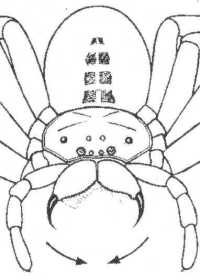 venenon tra la elirejo. La primitivaj araneoj, Mygalomorphae, havas antaŭen