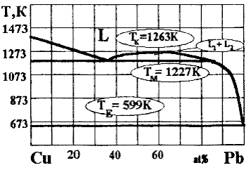 Por hodiaŭa tago fakte estas akceptitaj sekvaj nombroj: monotekta temperaturo TM=1227K, monotekta enhavo de la plumbo Lm—36pez.% kaj kriza temperaturo de distavoliĝo TK=1273K (vidu fig. 8).