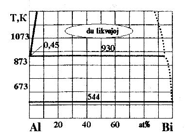 | Fig.9. Diagramo de ekvilibro de sistemo Al-Bi | Fig. 10. Diagramo de ekvilibro de sistemo Fe-Pb |