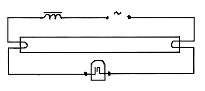 La cirkvito de la lumtubo (kaj de ĉiu ilo en kiu funkcias gasmalŝargiĝo aŭ arko) enhavas ankaŭ memindukan bobenon. (Nur ĉe alterna kurento.) Tiu necesas por bremsi la senbridan kreskiĝon de la kurento. Enŝaltante la tubon, speciala ŝaltilo fermas la cirkviton inter la du fadenoj, ili komencas ardi kaj emisii elektronojn. Poste la sama ŝaltilo malfermas la cirkviton, pro la ĉeso de la kurento, la bobeno produktas induktan tensio-impulson, kiu ekirigas la malŝargiĝon en la tubo. Dum la funkciado rapidaj elektronoj kunpuŝiĝas al neŭtraj gasatomoj, al vaporatomoj de hidrargo, faras el ili jonojn aŭ ekscitas ilin. La ekscititaj hidrarg-atomoj elradias ĉefe nevideblan ultraviolan radiadon (96 % 253,7 nm ondolonga radiado). Tiu ultraviola radiado ekscitas la fosforeskan tavolon, tial ĝi emisias videblan radiadon. La koloro de tiu radiado dependas de la materialo de la fosforeska tavolo. Iu ajn koloro estas estigebla per konvena elekto de la komponantoj de la fosforeska tavolo. Por ĝenerala lumigado oni uzas diversajn nuancojn de la blanka koloro.