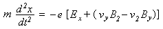 Aplikante la duan leĝon de Newton ma = F, ni povas priskribi ekvacion de la movo de elektrono en vektora formo: