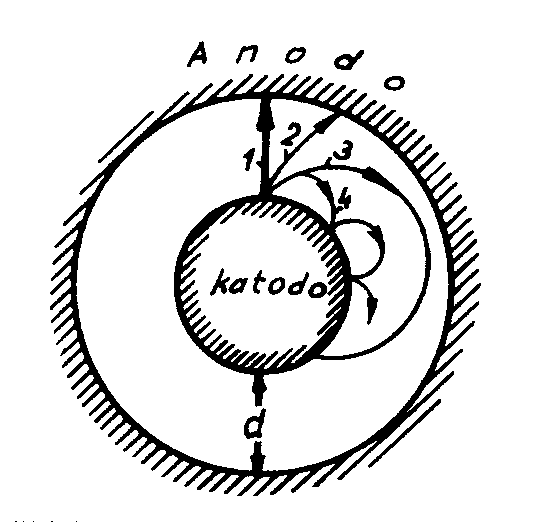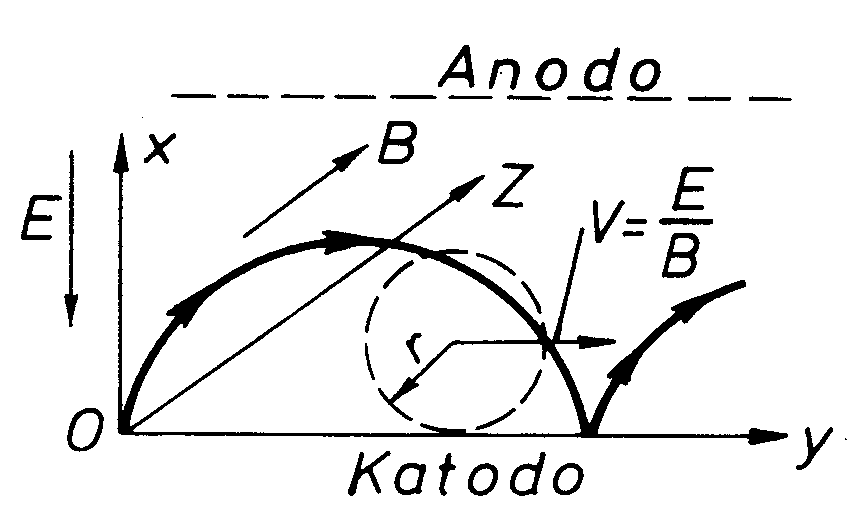 El la egalaĵo (9) sekvas, ke ĉe B=0 r egalas al infinito, t.e. la trajektorio estas rektlinia. Laŭ la kresko de magneta indukto, la trajektorio de la elektrono kurbiĝas kaj ĉe iu valoro de B, ne atingante la anodon ĝi reiras al la katodo – la anodkurento ĉesiĝas. La dependeco de la anodkurento disde la indukto estas ilustrita sur figuro 6. Tiu fenomeno estas nomata magnetrona efekto. Al la krita indukto respondas diametro de cikloido, egala al la distanco inter la katodo kaj anodo, t.e. 2r = d. Substituinte la kritan radiuson en la ekvacio (9) kaj solvinte ĝin laŭ B ni havas: