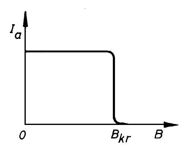 Ĉe konstanta B ekzistas krita anodtensio Ea kr. Ĉe Ea = Ea kr kurento tra diodo fariĝas nulo. Solvinte la ekvacion (12) por Ea ni ricevas: