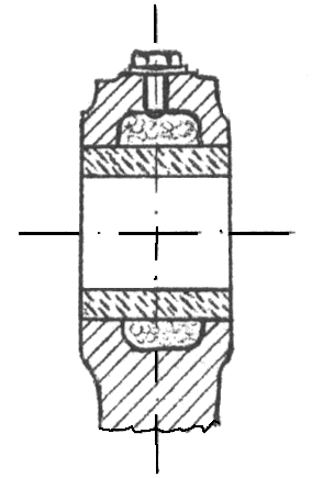 La enpremo povas esti milda (ne tro firma), ĉar la pivotingo varmiĝas pli ol la gisfera korpo de lagro, per kio la junto plifirmiĝas. La tubaj lagroj estas ankaŭ velditaj (bildo 277).