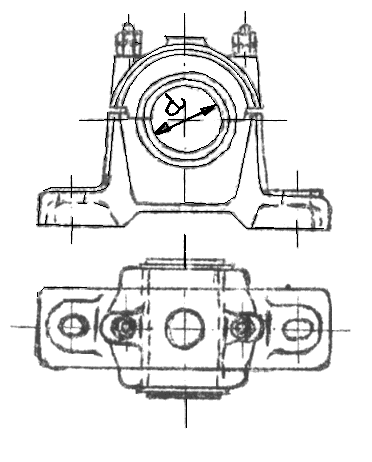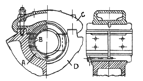 | Bildo 283. Lagro de krankoŝafto kun duparta lagrokuseno | Bildo 284. Lagro de krankoŝafto kun kvarparta lagrokuseno |