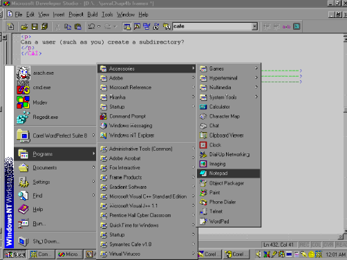 Ni uzos la tekstoredaktilon "Notepad" kiu troviĝas en ĉiuj versioj de la operaciumo Vindozo. Alklaku Start | Programs | Accessories por vidigi la menuon de Vindozaj servoprogramoj. Kiel vi povas jam supozi, malsamaj versioj de Vindozo lokas Notepad en malsamaj lokoj. Eble vi devos iomete serĉi ĝin.