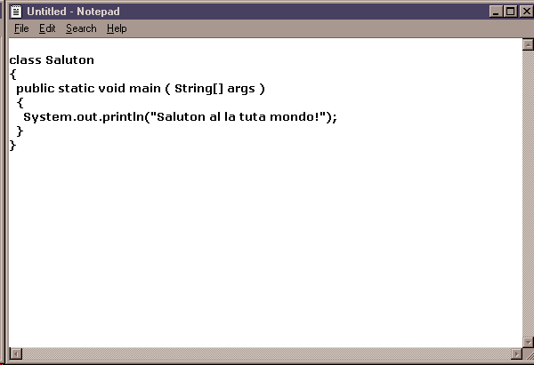 En la fenestro de Notepad tajpu tre precize kaj atente la jenan ekzemplan programon: