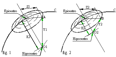 - Y1 kaj Y2 estas la hipocentra distanco.