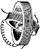 ![]() | Fig. 47. — Variometro konsistas el du bobenoj serie konektitaj: unu fiksa kaj la alia movebla. Tie ĉi la movebla bobeno turniĝas interne de la fiksa bobeno. |