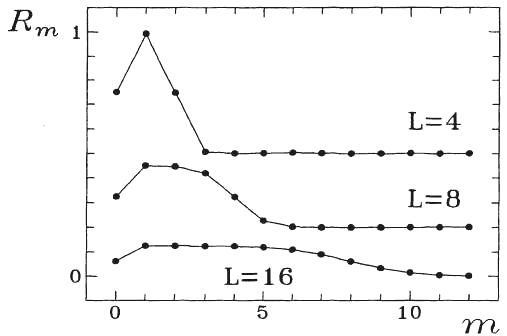 Ekz., sur fig. 4 estas desegnitaj Fourier-spektroj (dependeco Rm de m) por periodaj bazaj splajnoj kun L=4, 8 kaj 16). Pliigante L, oni povas pliigi kontribuon de oscilaĵo kun grandaj m.