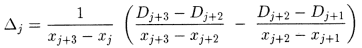 kie h=x−xj; b=Bj0, c=Bj2, e=Bj3. Se x=xj+1, oni povas ankaŭ uzi la ekvacion (7). Tial
