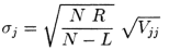 Se la valoroj yip1=const=1/N. Ĉi-okaze oni povas komputi precizecon de la koeficientoj Cj laŭ ekvacio
