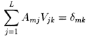 kie (Vjk) estas matrico inversa rilate al la matrico (Amj):