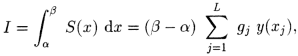 Se la argumentoj xj da kelkaj aproksimataj funkcioj estas la samaj, oni povas komputi koeficientojn Gj kaj post multfoje (se necese) kalkuli integralojn (23) kun diversaj vektoroj yj. Tiuj ĉi "kvadraturaj" formuloj estas ĉiam uzataj (metodoj de Newton-Cotes, Ĉebiŝev (vd. ekz. Marĉuk 1980, Krilov 1959), sed bazaj funkcioj ankaŭ povas esti splajnoj.