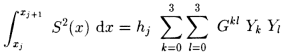 kie cj estas koeficientoj (ĉi-okaze egalaj al la valoroj de funkcio yj=y(xj)), kaj Sj(x) — la "bazaj funkcioj" difinitaj laŭ kondiĉoj