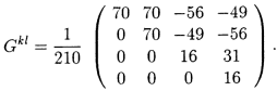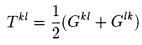 oni povas uzi ĝin en ekv.(28) anstataŭ Gkl. Tio ĉi signifas, ke la matrico Tkl estas la analogo de tie ĉi nomata "metrika tensoro" uzata aparte en la relativeca teorio.