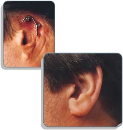 La homoj povas perdi parton de la vizaĝo pro akcidentoj, ekzemple pro fajra akcidento, veturila akcidento kaj aliaj traŭmoj, kirurgioj por kuraci vizaĝan aŭ buŝan aŭ makzelan kanceron; denaskaj sindromoj (ekz-e: Iu naskas sen orelo aŭ kun fendo ĉe la lipo, palpebro aŭ orelo).