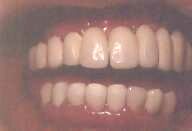 La kazo de alia sinjorino: Ŝi perdis la dentojn pro gingivaj malsanoj - ŝi ne scias bone zorgi pri siaj dentoj kaj gingivoj - kaj finfine ili estis preskaŭ falantaj. Oni devis forpreni ili, kaj anstataŭi ilin per metalaj radikoj (kompreneble, titanaj radikoj), post 6 monatoj oni malfermis ilin, oni faris provizorajn dentojn ĝis la ripariĝo de la gingivo, kaj fine oni konstruis porcelanajn dentojn.