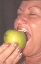 De la perdo de la naturaj dentoj ĝis la fino de la kuracado, ŝi uzis , kompreneble, tutan depreneblan superan protezon, kaj ŝi ne estis feliĉa, ĉar ŝi ne povis bone maĉi. Kaj tio okazas al ĉiuj homoj, kiuj uzas artefaritan dentaron. Ekzemple: Ili ne povas mordi malmolajn manĝaĵojn ĉe la antaŭaj dentoj, ĉar tie estas la plej tikla loko de la superaj (kaj ankaŭ de la malsuperaj) dentaroj. Ili simple foriras de la gingiva bazo, kie ili kuŝas, se la homoj manĝas ekzemple pomon. Kaj post la kuracado ŝi estis tre feliĉa, ĉar ŝi denove povis mordi pomon.